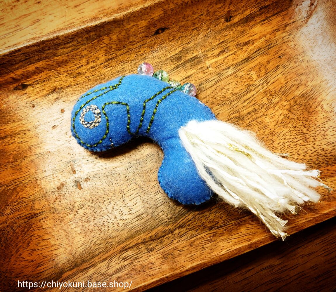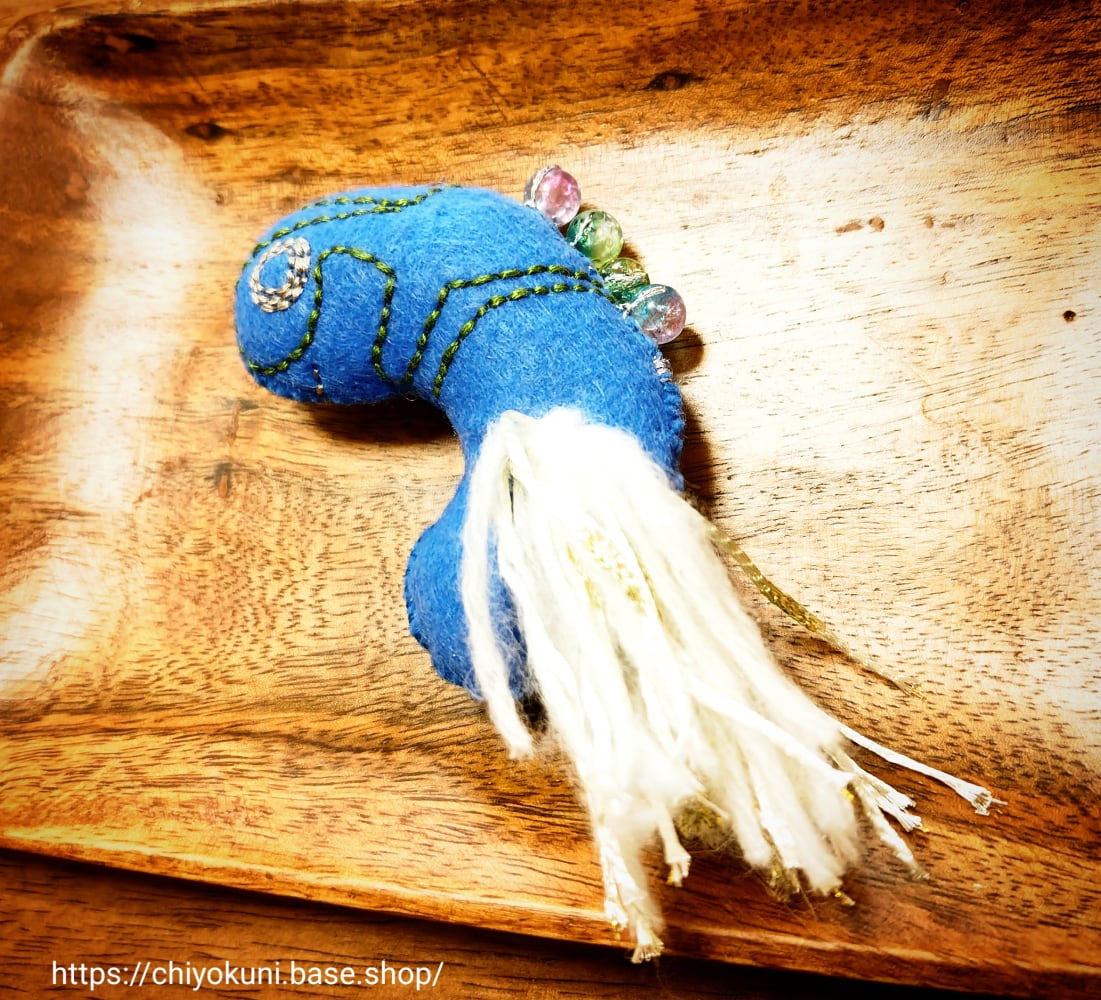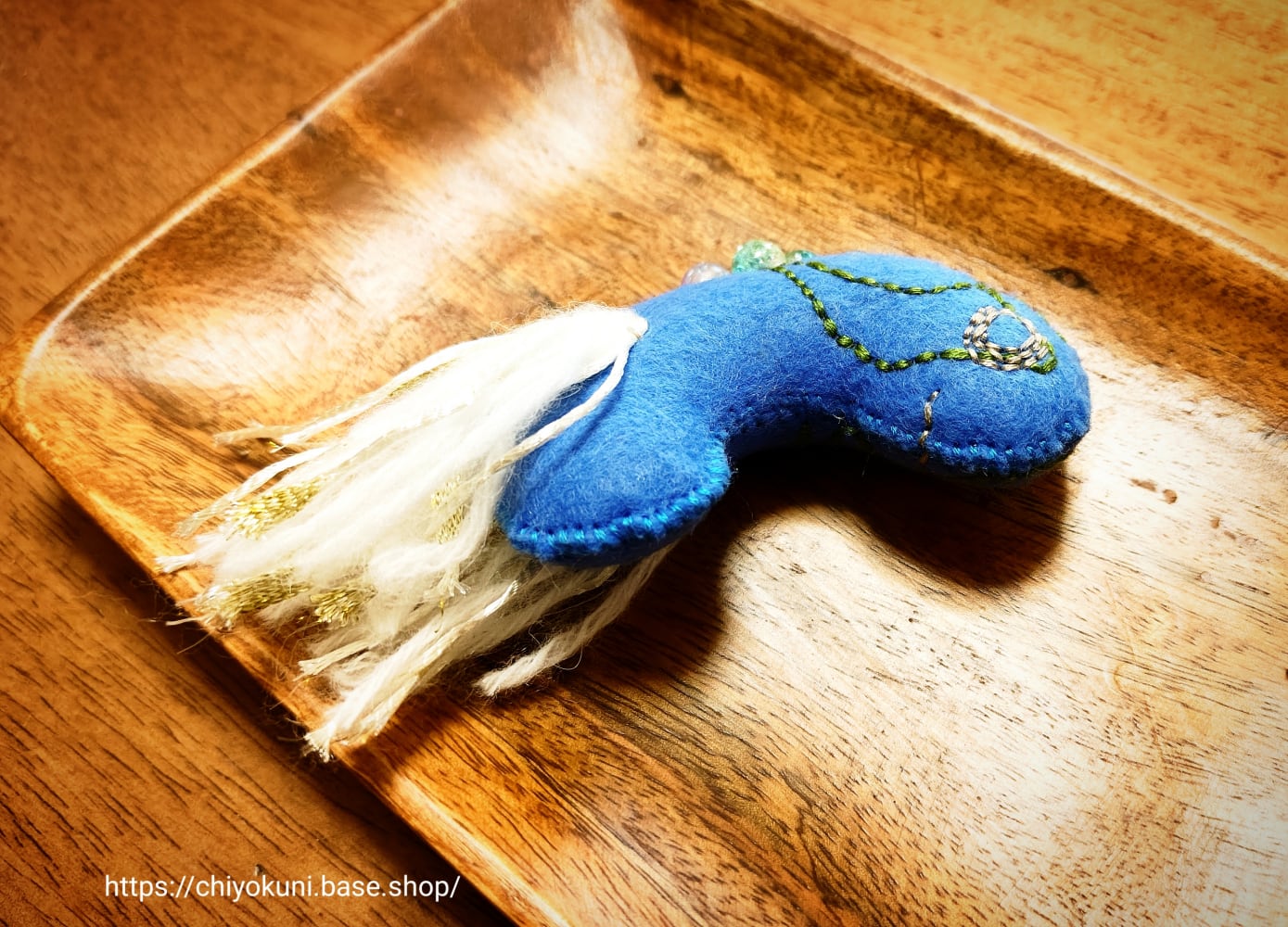 素材→フェルト布、刺繍糸、ポリエステルわた、ポリエステル毛糸、プラスチックビーズ