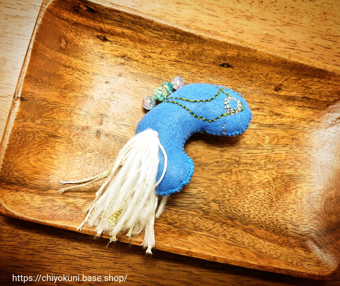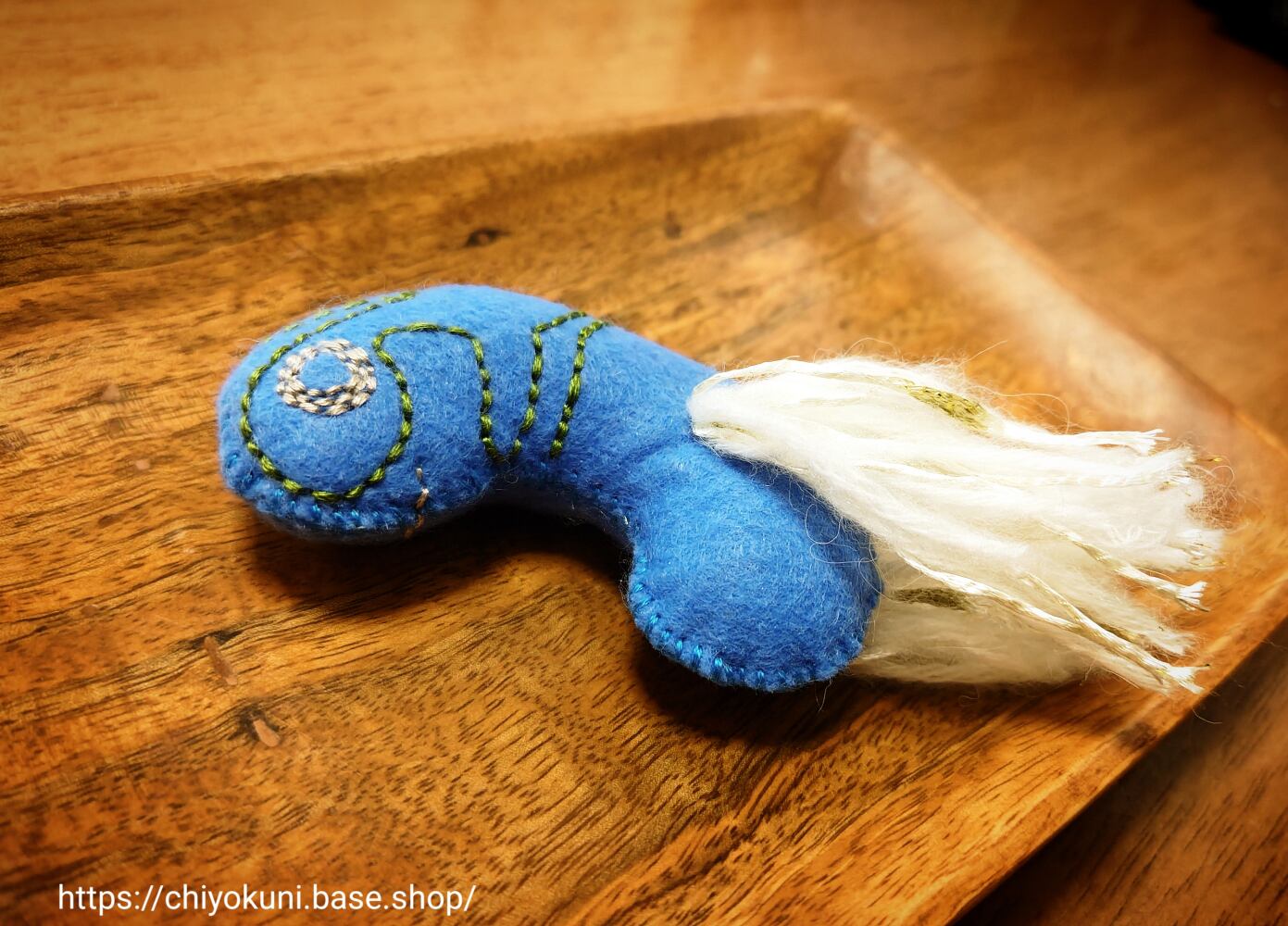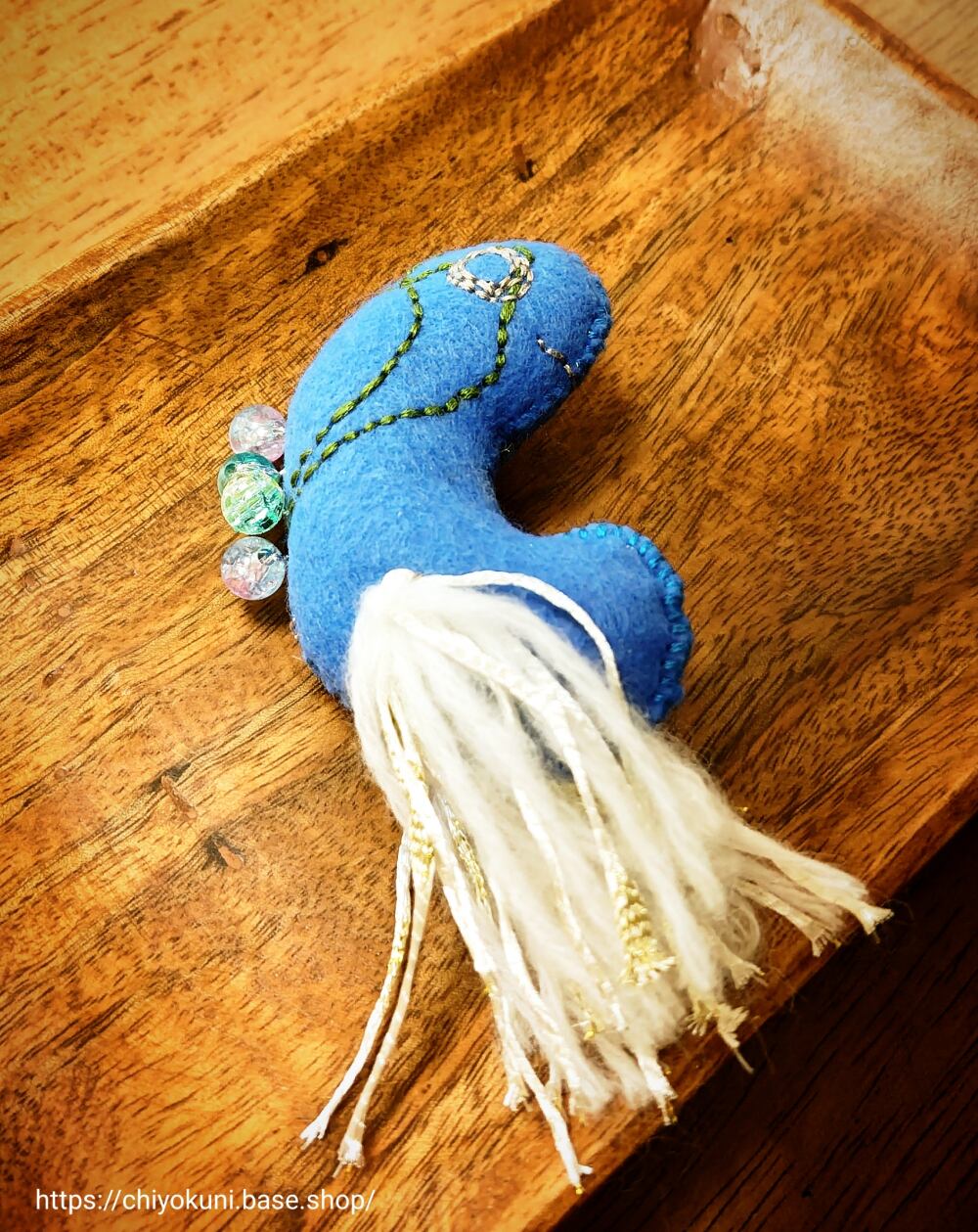 素材→フェルト布、刺繍糸、ポリエステルわた、ポリエステル毛糸、プラスチックビーズ
