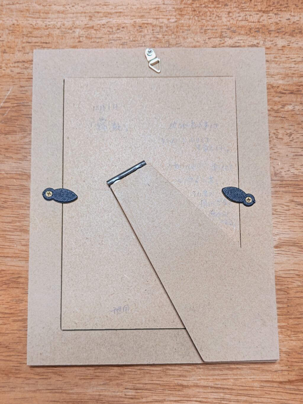 100円ショップで購入した額に、壁掛け用金具を取り付けています。