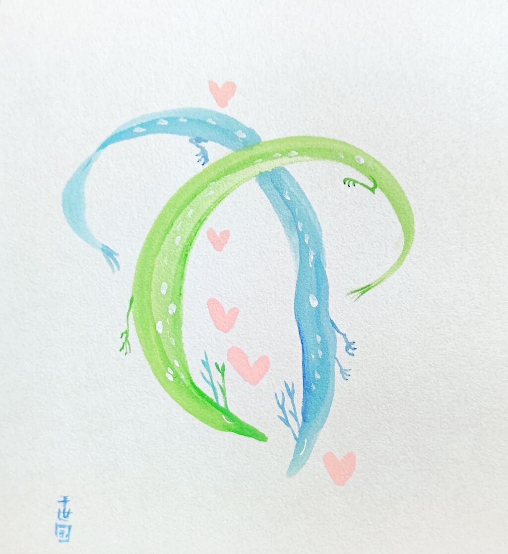 目に見えない世界の生き物を見る事の出来る 神霊画家、千世と黒クニが描いたシンプルな癒しの絵です。