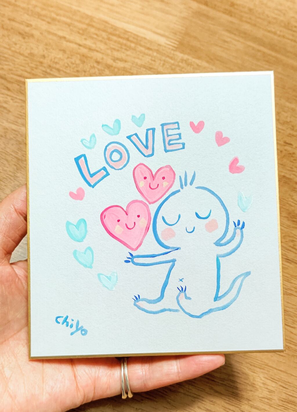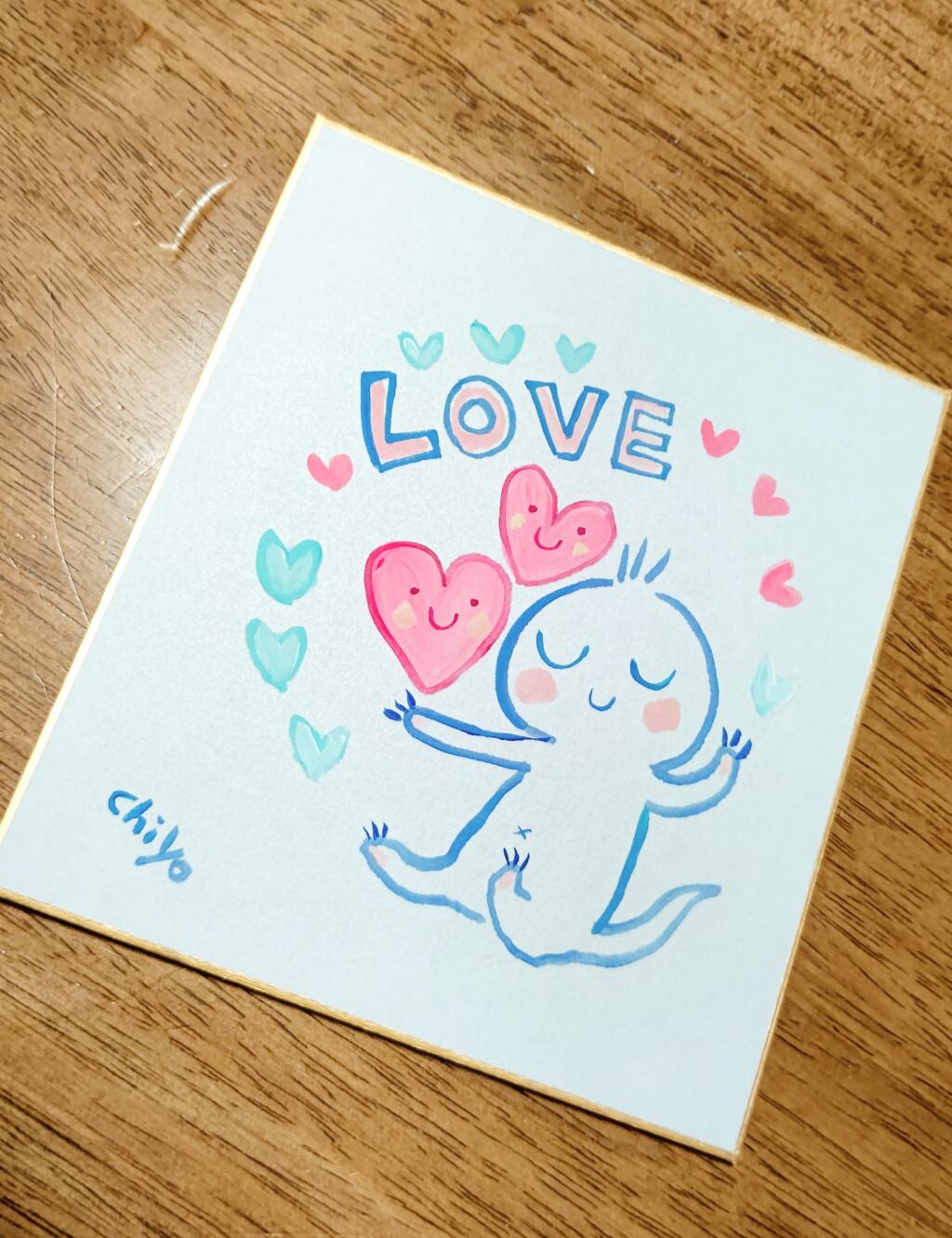 「ウニちゃん(ウニヒピリ)とハート」ミニ色紙原画