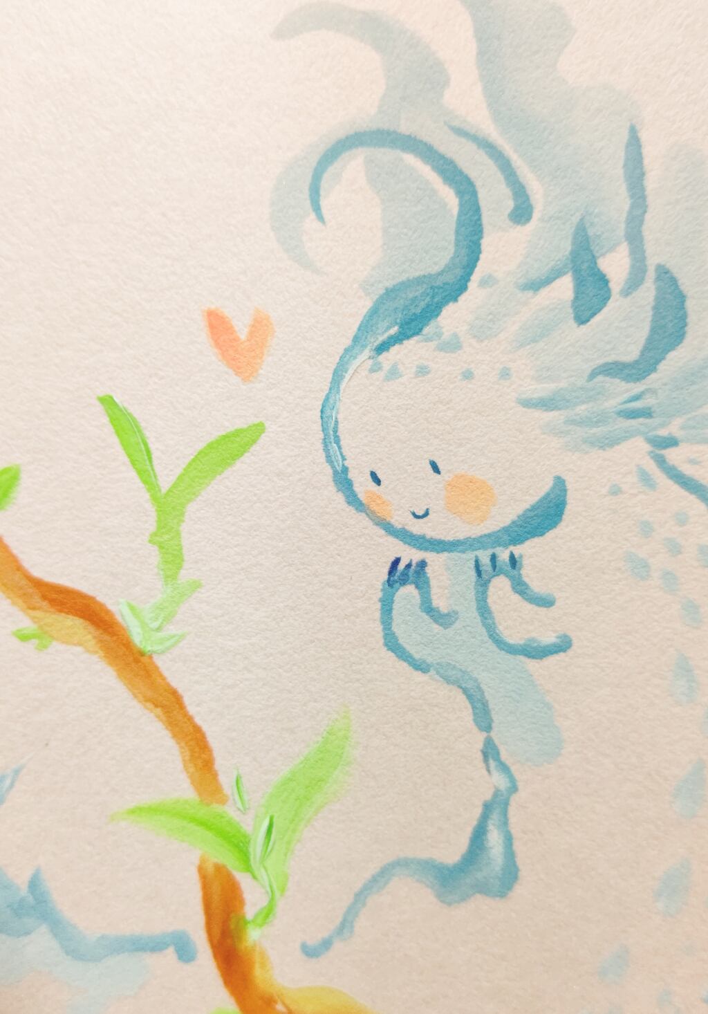 目に見えない世界の生き物を見る事の出来る 神霊画家、千世と黒クニが描いたシンプルな癒しの絵です。