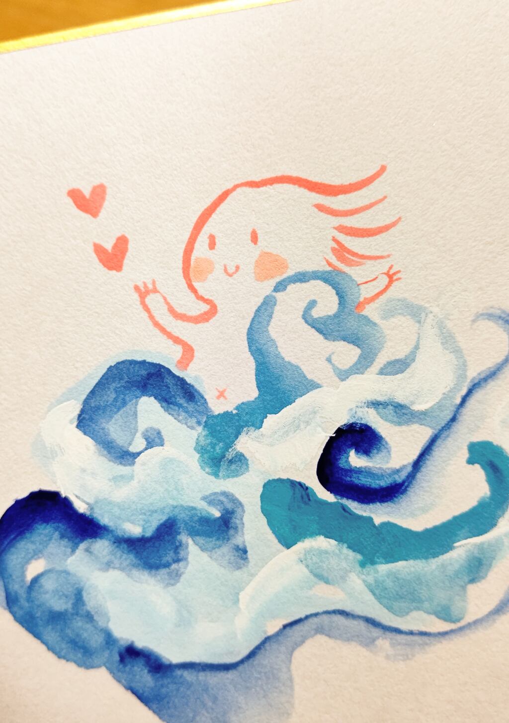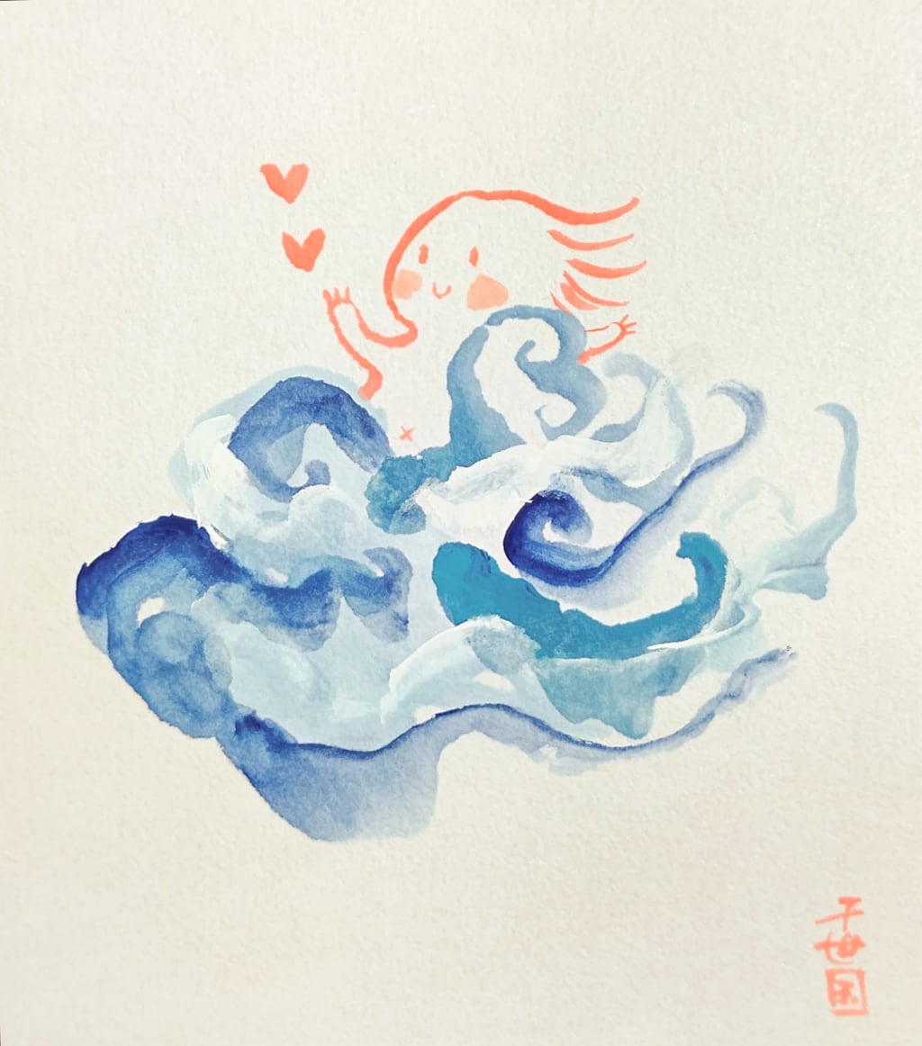 目に見えない世界の生き物を見る事の出来る 神霊画家、千世と黒クニが描いたシンプルな癒しの絵です。