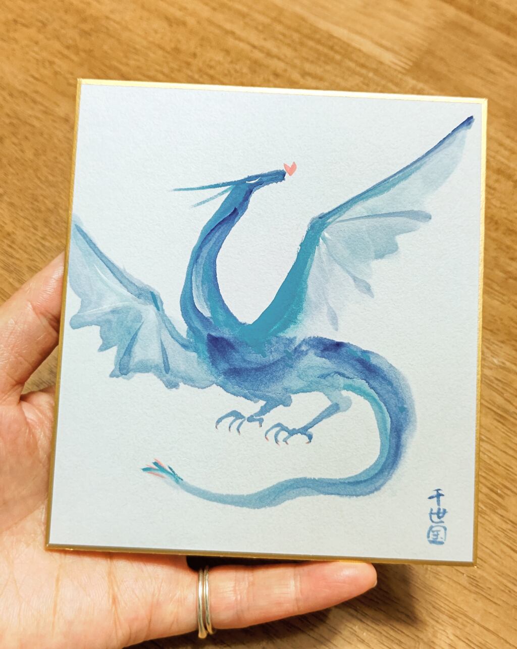 「青いドラゴン」ミニ色紙原画