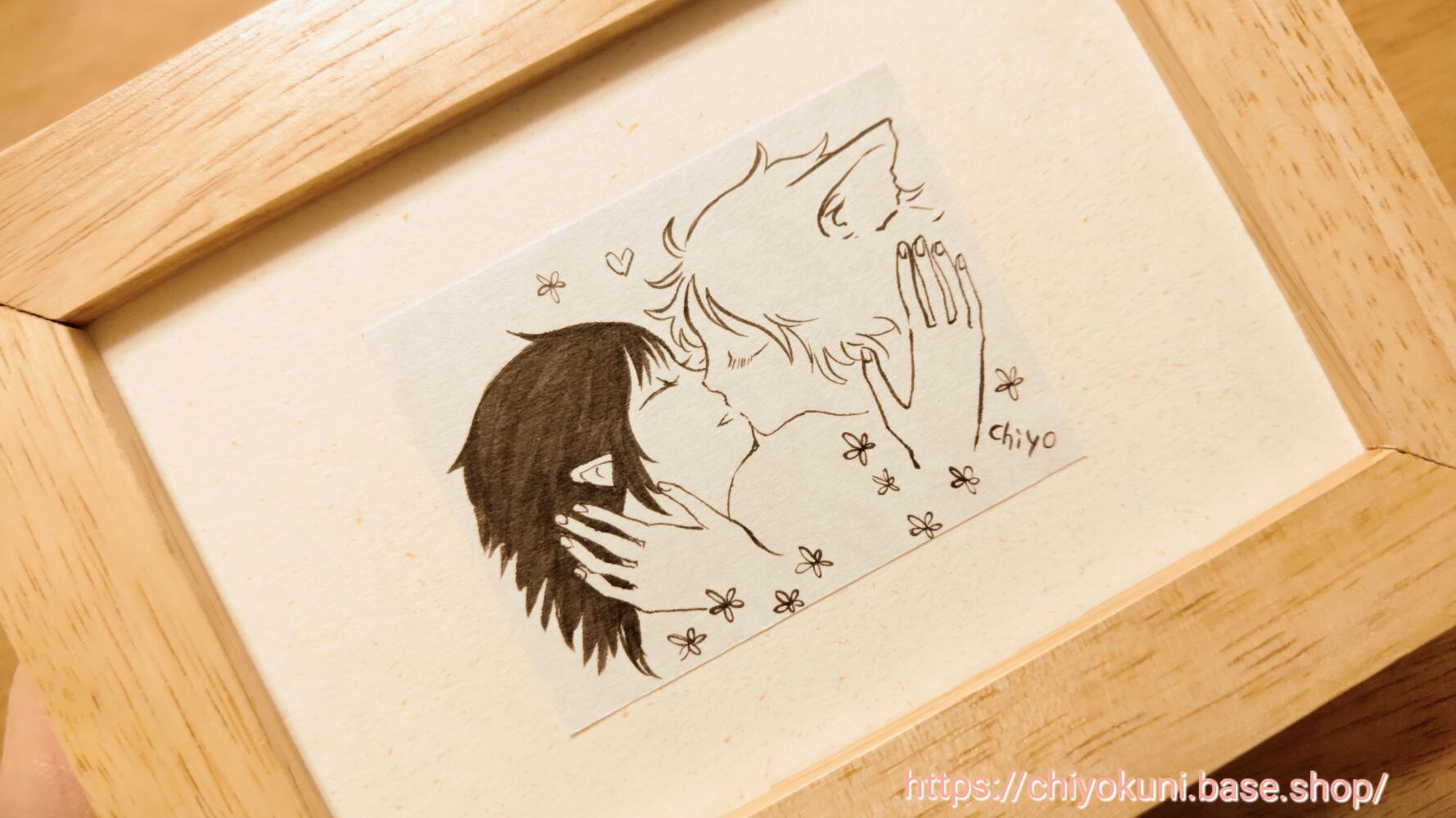 原画サイズ→約 横13.2cm 縦9.1cmの用紙に、ミニ絵を貼り付けています。