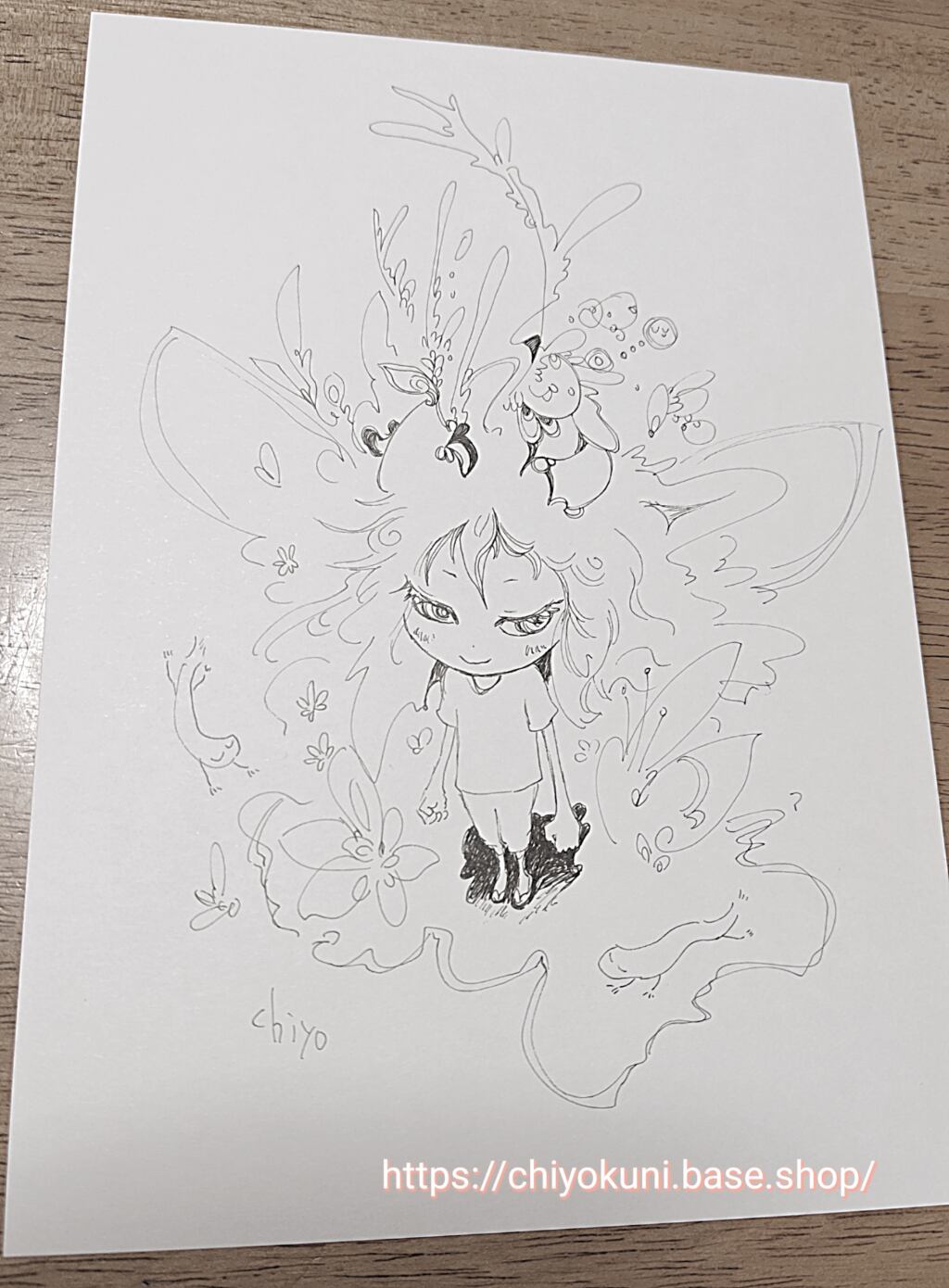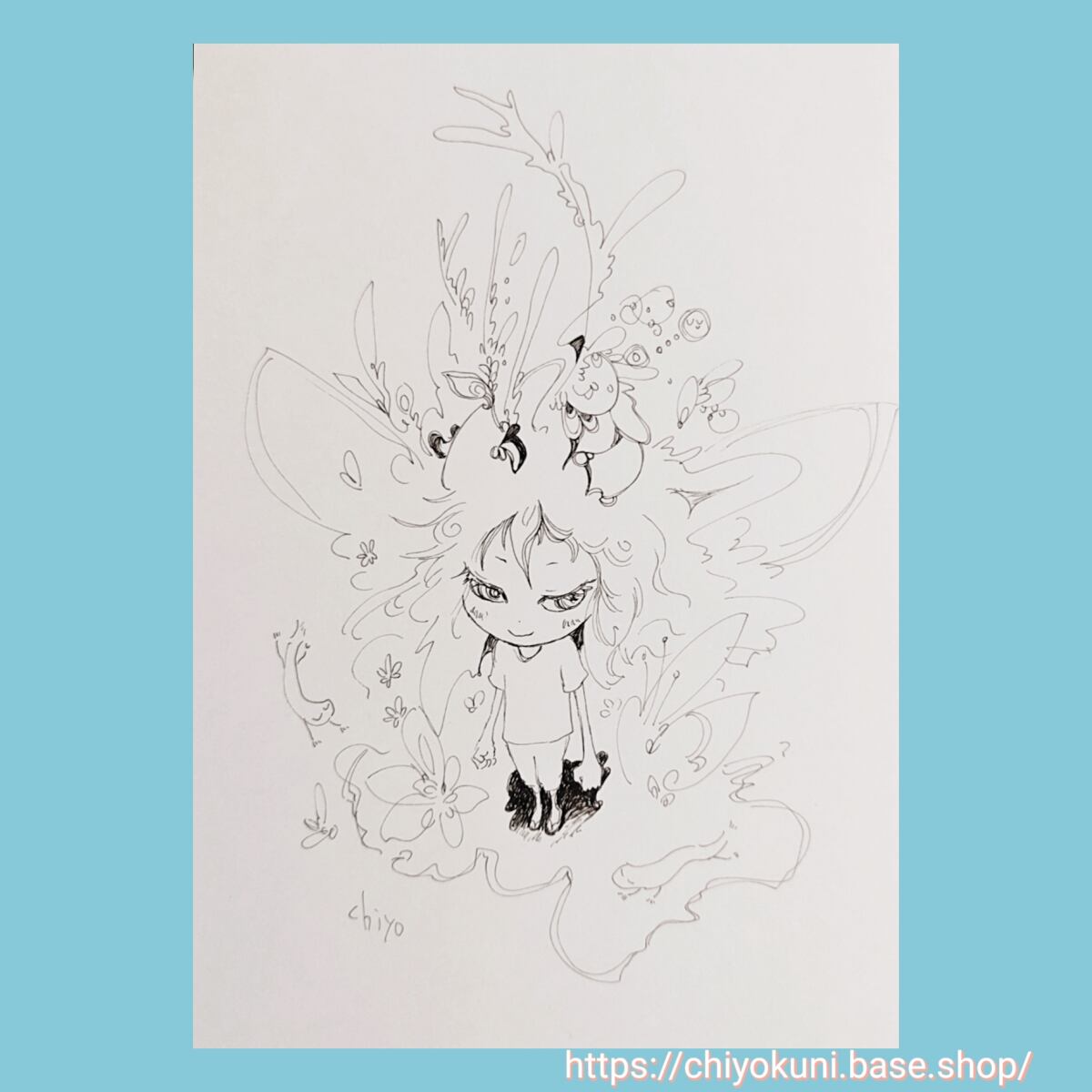 目に見えない世界の生き物を見て触れる事の出来る 神霊画家、千世と黒クニが描いたシンプルなフィーリングアートです。
