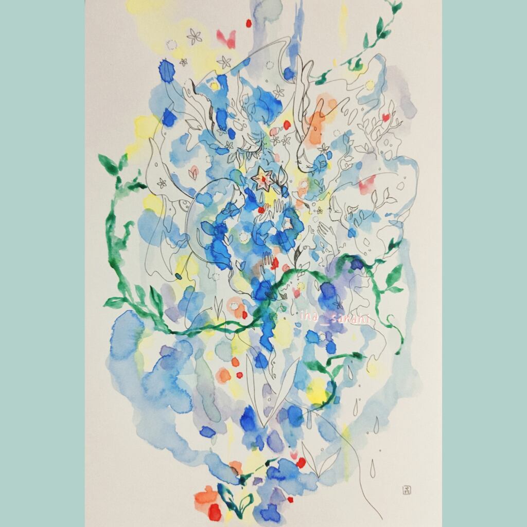 (絵の具は透明水彩を多く使用しています。水に濡れると絵の具が滲んだりしますのでお気をつけ下さい。)