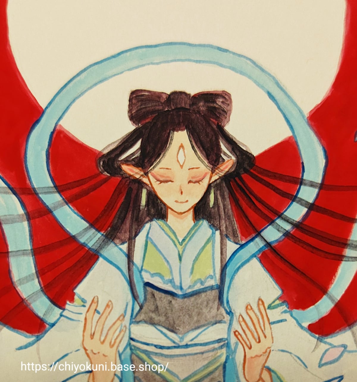 菊理媛神様をイメージして絵を描きました。