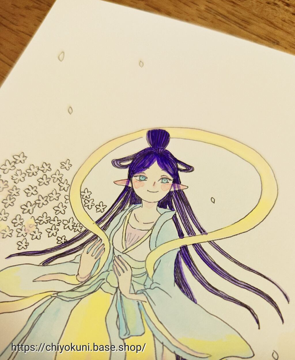 木花咲耶姫神をイメージして描いた 神様の絵です。